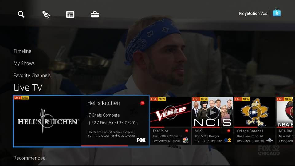 With 20 million-plus PlayStation 4 consoles sold to date and over 80 million PlayStation 3s in homes worldwide, Sony has plenty of reason to make Vue, its TV-streaming service, a cornerstone of the platform. The subscription-based service, which officially launches today in New York, Chicago and Philadelphia, is more than just a Sling TV clone, too. Vue offers not only a mixture of live and on-demand content from cable networks like Discovery Communications (e.g., TLC, OWN, Animal Planet) and NBCUniversal (e.g., Bravo, CNBC and E!), but also broadcast TV from NBC, CBS and FOX. And thanks to cloud storage, PS Vue also features what Sony's calling a "virtually unlimited" DVR. It's the company's take on a streaming experience that "redefines television."